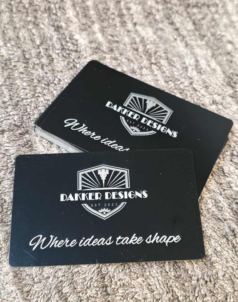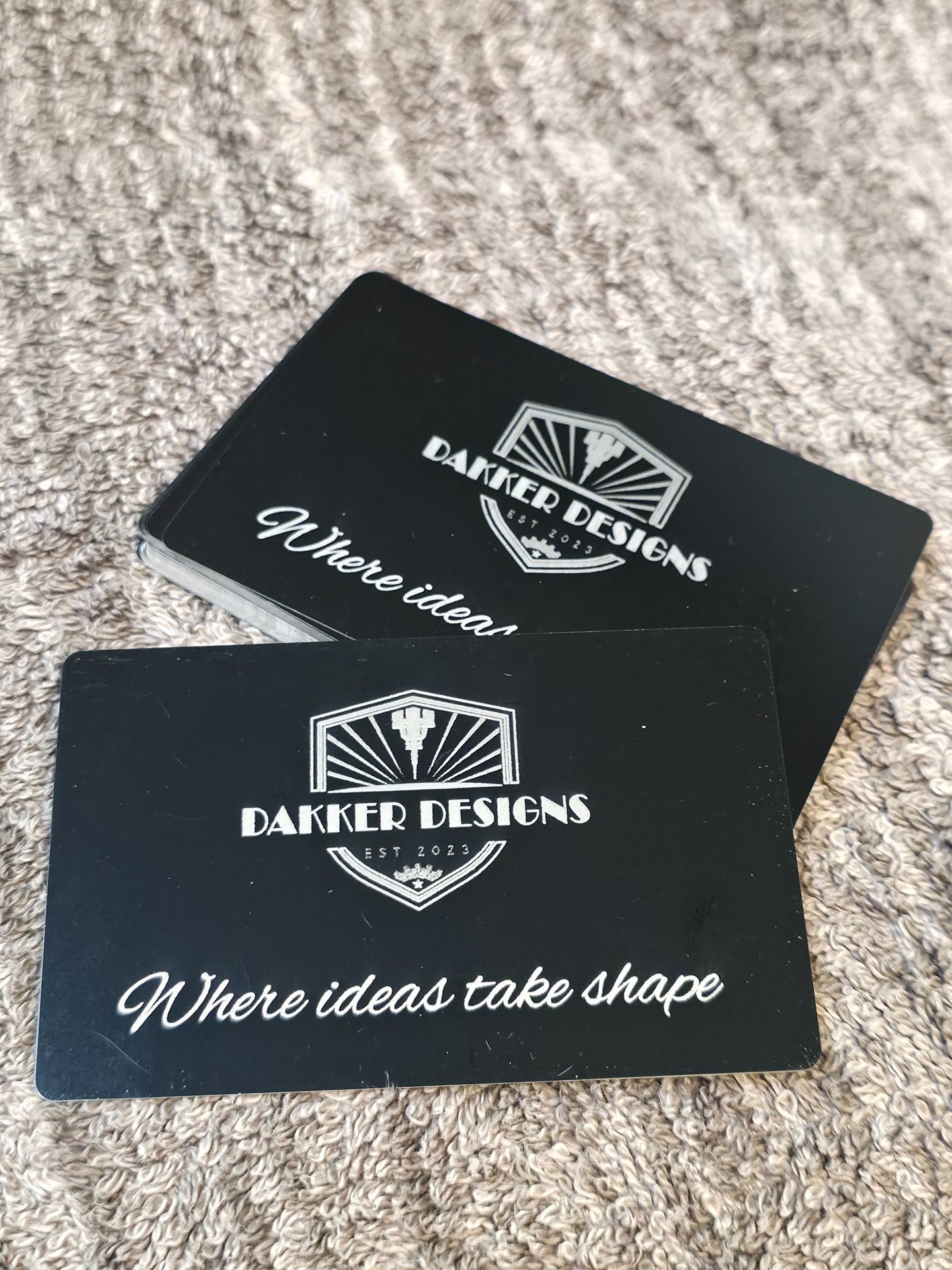 Make your first impression unbreakable. Dakker Designs’ Fortress Aluminum Business Cards are crafted from high-grade anodized aluminum and laser-engraved with crisp, permanent detail. Each card features built-in RFID protection, a smooth matte finish, and the strength to outlast paper. Perfect for professionals who want their brand to stand out — sleek, modern, and undeniably memorable.