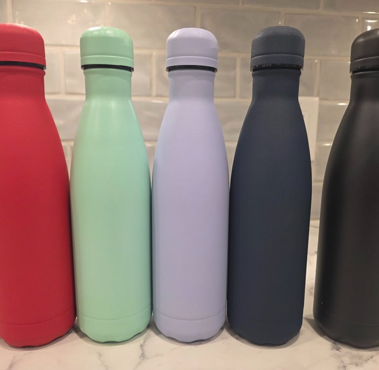 Our 500 ml stainless steel water bottles combine everyday practicality with the custom style you expect from Dakker Designs. Each bottle is double-walled and vacuum-insulated to keep drinks cold or hot for hours, wrapped in a thick, high-quality exterior coating with a smooth, durable grip finish. The leak-proof painted lid seals securely for worry-free travel wherever your day takes you.